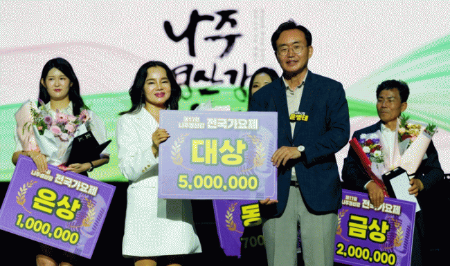 ¡®2025 ³ªÁÖ¿µ»ê°ÃàÁ¦¡¯ ±¹¹ÎÂü¿© ÇÁ·Î±×·¥Áß ÇϳªÀÎ ¡®Á¦17ȸ ³ªÁÖ ¿µ»ê° Àü±¹ °¡¿äÁ¦¡¯¿¡¼ õ³âÇÐ(±è¿ë¸²)À» ¿Ã¢ÇÑ À强Èñ ¾¾(±¤ÁÖ±¤¿ª½Ã)°¡ ¿µ¿¹ÀÇ ´ë»óÀ» Â÷ÁöÇØ ºÎ»óÀ¸·Î »ó±Ý 500¸¸ ¿øÀ» ¼ö¿© ¹Þ¾Ò´Ù.