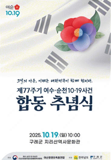 Àü³² ±¸·Ê±ºÀº ¿©¼ø»ç°ÇÀÇ ¿ª»çÀû Àǹ̸¦ µÇ»õ±â°í Èñ»ýÀÚ¿Í À¯Á·µéÀ» À§·ÎÇϱâ À§ÇÑ¡®¿©¼ø»ç°Ç Á¦77ÁÖ±â Á¤ºÎÁÖÃÖ ÇÕµ¿Ãß³ä½Ä¡¯ÀÌ ¿À´Â 19ÀÏ ±¸·Ê±º Áö¸®»ê¿ª»ç¹®È°ü¿¡¼ °³ÃÖµÈ´Ù°í ¹àÇû´Ù.