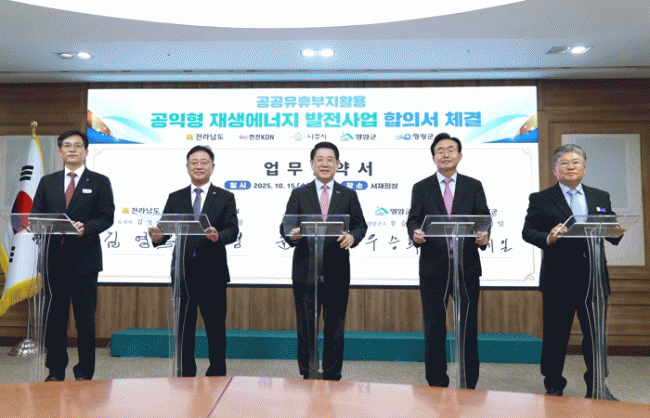 ¿µ¾Ï±ºÀÌ 15ÀÏ Àü³²µµÃ»¿¡¼ Àü¶ó³²µµ, ³ªÁÖ½Ã, ¿µ±¤±º, ÇÑÀüKDN(ÁÖ)°ú ¡®°ø°ø À¯ÈÞºÎÁö Ȱ¿ë °øÀÍÇü Àç»ý¿¡³ÊÁö ¹ßÀü»ç¾÷ ¾÷¹«Çù¾à¡¯À» ü°áÇß´Ù.