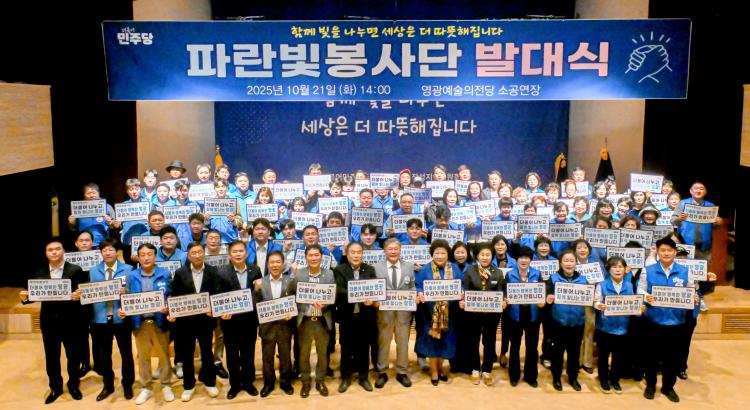 [ÇØÀα³À°½Å¹®] ´õºÒ¾î¹ÎÁÖ´ç ´ã¾çÇÔÆò¿µ±¤À强Áö¿ªÀ§¿øÈ¸(À§¿øÀå À̰³È£)´Â 10¿ù 21ÀÏ ¿µ±¤¿¹¼úÀÇÀü´ç ¼Ò°ø¿¬Àå¿¡¼ ¡®ÇÔ²² ºûÀ» ³ª´©¸é ¼¼»óÀº ´õ µû¶æÇØÁý´Ï´Ù¡¯¸¦ ºÎÁ¦·Î ¡°ÆÄ¶õºûºÀ»ç´Ü ¹ß´ë½Ä¡±À» ¼ºÈ²¸®¿¡ °³ÃÖÇß´Ù.