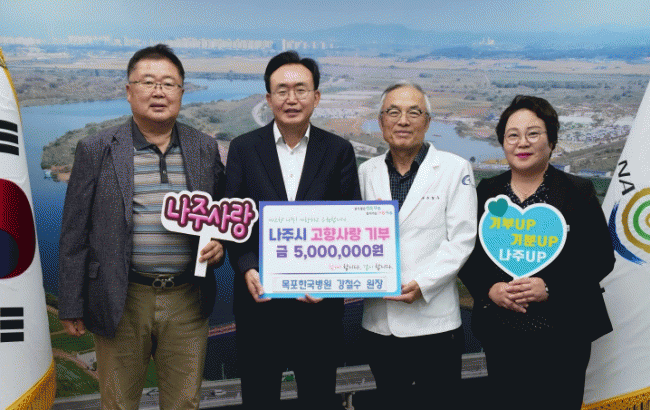 Àü¶ó³²µµ ³ªÁֽô 22ÀÏ ¸ñÆ÷Çѱ¹º´¿ø °Ã¶¼ö ¿øÀå(¿À¸¥ÂÊ µÎ ¹øÂ°)ÀÌ Áö¿ª»çȸ ¹ßÀüÀ» À§ÇØ °íÇâ»ç¶û±âºÎ±Ý 500¸¸ ¿øÀ» ±âŹÇß´Ù°í ¹àÇû´Ù.