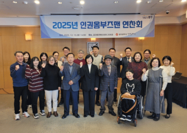 ±¤ÁÖ±¤¿ª½Ã´Â 15ÀÏ ±è´ëÁßÄÁº¥¼Ç¼¾ÅÍ È¸Àǽǿ¡¼ ÀαǿȺÎÁî¸ÇÀÇ ¿ªÇÒ°ú ¹ßÀü ¹æÇâÀ» ³íÀÇÇÏ´Â ¡®ÀαǿȺÎÁî¸Ç ¿¬Âùȸ¡¯¸¦ ¿¾ú´Ù.