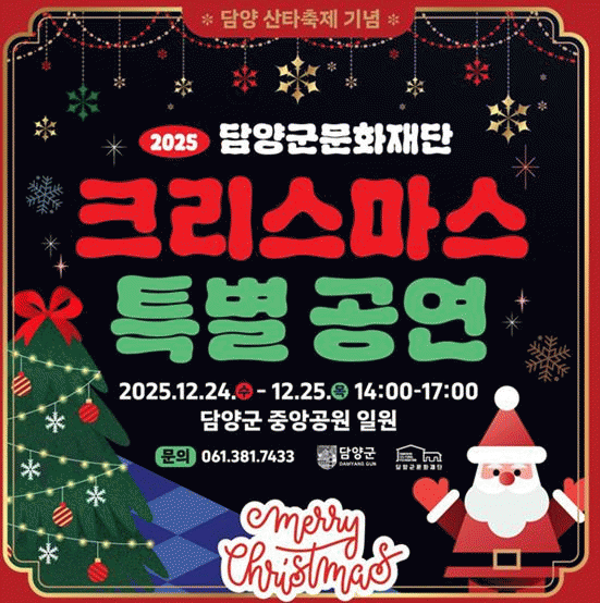 ´ã¾ç±º¹®ÈÀç´ÜÀº ¿¬¸»¿¬½Ã¸¦ ¸Â¾Æ ¡®Á¦7ȸ ´ã¾ç»êŸÃàÁ¦¡¯¿Í ¿¬°èÇÑ ¡®2025 Å©¸®½º¸¶½º Ưº° °ø¿¬¡¯À» 12¿ù 24ÀϺÎÅÍ 25ÀϱîÁö ÀÌÆ²°£ ´ã¾çÀ¾ Áß¾Ó°ø¿ø ÀÏ¿ø¿¡¼ °³ÃÖÇÑ´Ù.