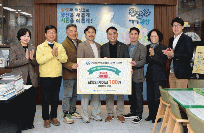 (»ç)´ëÇÑÁ¦°úÇùȸ ±¤ÁÖ¡¤Àü³²Áöȸ ±¤»ê±¸ÁöºÎ(ÁöºÎÀå Á¤ÇüÅÂ)´Â Áö³ 15ÀÏ ÀÌ¿ô »ç¶û ½ÇõÀ» À§ÇØ Á÷Á¢ ¸¸µç »ç¶ûÀÇ ÄÉÀÌÅ© 100°³¸¦ ±¤»ê±¸¿¡ Àü´ÞÇß´Ù.