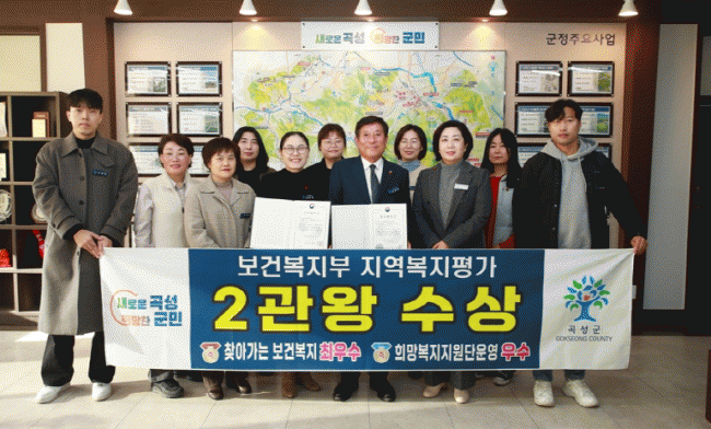 Àü³² °î¼º±ºÀÌ º¸°Çº¹ÁöºÎ°¡ ÁÖ°üÇÑ '2025³â Áö¿ªº¹Áö»ç¾÷ Æò°¡'¿¡¼ ¡®Ã£¾Æ°¡´Â º¸°Çº¹Áö¼ºñ½º Á¦°ø ºÐ¾ß' Àü±¹ 4¹øÂ°ÀÌÀÚ Àü¶ó³²µµ 22°³ ½Ã±º Áß À¯ÀÏÇÏ°Ô ÃÖ¿ì¼ö»óÀ» ¹Þ°í, 'Èñ¸Áº¹ÁöÁö¿ø´Ü ¿î¿µ ºÐ¾ß'¿¡¼µµ ¿ì¼ö»óÀ» µ¿½Ã ¼ö»óÇÏ´Â Äè°Å¸¦ ÀÌ·ç¾ú´Ù°í 16ÀÏ ¹àÇû´Ù.
