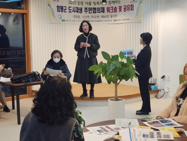 ÇÔÆò±ºÀº 17ÀÏ ¡°ÇÔÆò±º µµ½ÃÀç»ýÁö¿ø¼¾ÅͰ¡ Áö³ 12ÀÏ ³ªºñ¾î¿ï¸²¼¾ÅÍ¿¡¼ ¡®µµ½ÃÀç»ý ÁÖ¹ÎÇùÀÇü ¿öÅ©¼ó ¹× °øÀ¯È¸¡¯¸¦ °³ÃÖÇß´Ù¡±°í ¹àÇû´Ù. ¿öÅ©¼ó¿¡´Â À¾¸é µµ½ÃÀç»ý»ç¾÷¿¡ Âü¿©ÇÏ´Â ÁÖ¹ÎÇùÀÇü À§¿ø µî 50¿© ¸íÀÌ Âü¼®Çß´Ù.