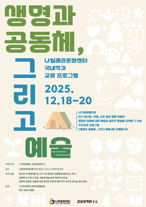 ³ªÁÖ¹®ÈÀç´ÜÀº ¿À´Â 12¿ù 18ÀϺÎÅÍ 20ÀϱîÁö 3Àϰ£ ³ªºô·¹¶ó¹®È¼¾ÅÍ¿¡¼ ¡®»ý¸í°ú ÆòÈ¡¯¸¦ ÁÖÁ¦·Î ÇÑ ÀÛ°¡±³·ù ÇÁ·Î±×·¥À» °³ÃÖÇÑ´Ù°í 17ÀÏ ¹àÇû´Ù.