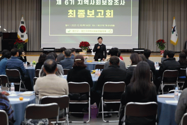 ±¤ÁÖ ±¤»ê±¸´Â 18ÀÏ ±¸Ã» 7Ãþ À±»ó¿øÈ¦¿¡¼ ¡®Á¦6±â(2027~2030³â) Áö¿ª»çȸº¸Àå°èȹ¡¯ ¼ö¸³À» À§ÇÑ Áö¿ª»çȸº¸ÀåÁ¶»ç ÃÖÁ¾ º¸°íȸ¸¦ ¿¾ú´Ù.
