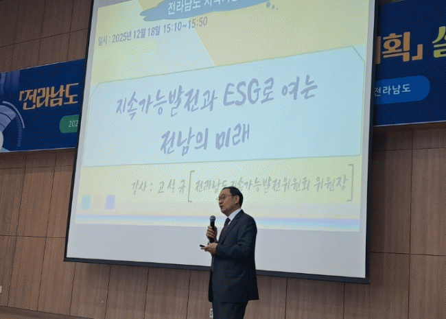 ù¹øÂ° °¿¬ÀÚ·Î ³ª¼± °í¼®±Ô Àü³²µµ Áö¼Ó°¡´É¹ßÀüÀ§¿øÀåÀº ¡®Áö¼Ó°¡´É¹ßÀü°ú ESG·Î ¿©´Â Àü³²ÀÇ ¹Ì·¡¡¯¸¦ ÁÖÁ¦·Î Áö¼Ó°¡´É¹ßÀüÀÇ ÀÇ¹Ì¿Í ÇÔ²² Àü³²µµ°¡ ¾ÕÀ¸·Î ³ª¾Æ°¡¾ß ÇÒ ¹æÇâÀ» Á¦½ÃÇß´Ù. À̾Àü¶ó³²µµ Áö¼Ó°¡´É¹ßÀü ±âº»Àü·« ¹× ÃßÁø°èȹ¡¯ÀÇ ÁÖ¿ä ³»¿ë°ú ÃßÁøÃ¼°è¿¡ ´ëÇÑ ±¸Ã¼Àû ÀÌÇØ¸¦ ³ôÀ̱â À§ÇÑ Àü·« ¼ö¸³ ¹è°æ, ÇâÈÄ 5³â°ú 20³âÀ» ³»´Ùº¸´Â Áß¡¤Àå±â ÃßÁø °úÁ¦ µîÀ» ¼Ò°³Çß´Ù.