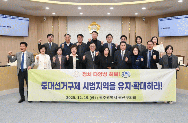 ±¤»ê±¸ÀÇȸ°¡ 19ÀÏ Á¦301ȸ Á¤·Êȸ Á¦4Â÷ º»È¸ÀÇ¿¡¼ ¡®Áß´ë¼±°Å±¸Á¦ ½Ã¹üÁö¿ª À¯Áö¡¤È®´ë ¹× Á¦µµ °³¼± Ã˱¸ °ÇÀǾȡ¯À» äÅÃÇß´Ù.