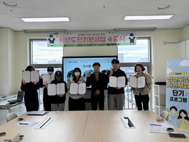 [ÇØÀα³À°½Å¹®] ¿µ±¤±º û³â¼¾ÅÍ´Â 2¿ù 25ÀÏ(¼ö) û³âµµÀüÁö¿ø»ç¾÷ ´Ü±â 1±â ¼ö·á½ÄÀ» ¿°í 5ÁÖ°£ÀÇ °úÁ¤À» ¸¶¹«¸®Çß´Ù. À̹ø ´Ü±â 1±â´Â Áö³ 1¿ù 27ÀÏ(È) ½ÃÀÛÇØ ¿î¿µµÆÀ¸¸ç, ½ÅûÀÚ 8¸í Àü¿øÀÌ ¼º½ÇÈ÷ Âü¿©ÇØ Àü¿ø À̼ö¶ó´Â ¼º°ú¸¦ °Åµ×´Ù.