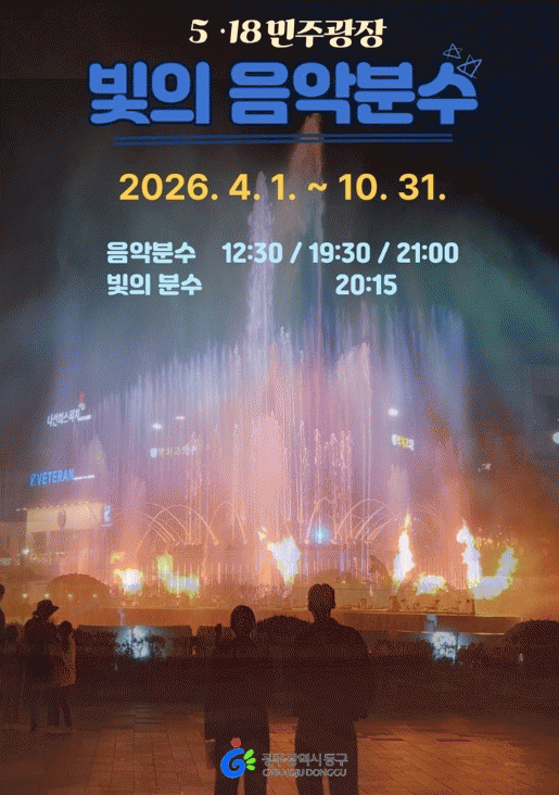 5¡¤18¹ÎÁÖ±¤ÀåÀÇ ´ëÇ¥ ¾ß°£ °æ°ü ÄÜÅÙÃ÷ÀÎ ¡®ºûÀÇ À½¾ÇºÐ¼ö¡¯´Â È·ÁÇÑ ºÐ¼ö ¿¬Ãâ°ú À½¾ÇÀ» °áÇÕÇÑ °ø¿¬Çü ºÐ¼ö·Î, ±¤ÁÖ ¹ÎÁÖȿÀÇ Áß½ÉÀÌÀÚ »ó¡ °ø°£ÀÎ 5¡¤18¹ÎÁÖ±¤ÀåÀ» ã´Â ½Ã¹Î°ú °ü±¤°´¿¡°Ô »ö´Ù¸¥ º¼°Å¸®¸¦ ¼±»çÇÒ ¿¹Á¤ÀÌ´Ù.