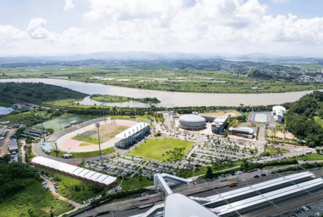 ƯÈ÷ ÁÖ¸ñµÇ´Â °ÍÀº Àü±¹¿¡¼ À¯ÀÏÇÏ°Ô KTX¿Í SRT°¡ Á¤Â÷ÇÏ´Â ³ªÁÖ¿ªÀÌ Á¾ÇÕ½ºÆ÷Ã÷ÆÄÅ©¿Í ¿¬°áµÅ ÀÖ´Ù´Â Á¡ÀÌ´Ù. ¼öµµ±Ç°ú Àü±¹ ÁÖ¿ä µµ½Ã¿¡¼ ¼±¼ö´Ü°ú °ü¶÷°´µéÀÌ Æí¸®ÇÏ°Ô °æ±âÀå¿¡ Á¢±ÙÇÒ ¼ö ÀÖ¾î ½ºÆ÷Ã÷ Çà»ç °³ÃÖ¿¡ ¸Å¿ì À¯¸®ÇÑ Á¶°ÇÀ» °®Ãß°í ÀÖ´Ù. ÀÌó·³ ´Ù¾çÇÑ ½ºÆ÷Ã÷ ½Ã¼³°ú ±³Åë ÀÎÇÁ¶ó°¡ °áÇÕÇÑ ±¸Á¶´Â ³ªÁÖ¸¸ÀÇ µ¶º¸ÀûÀÎ °æÀï·ÂÀ¸·Î Æò°¡µÈ´Ù.
