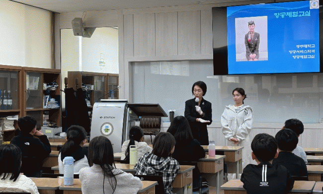 15ÀÏ ±¤ÁÖ´ë Ç×°ø¼ºñ½ºÇаú¿¡¼ ÁøÇàÇÑ ¡®¾î¼¿Í ½Â¹«¿øÀº óÀ½ÀÌÁö-Á÷¾÷ üÇè ÇÁ·Î±×·¥¡¯¿¡ ¿µÃµÃÊ 4Çгâ 17¸íÀÇ ÇлýÀÌ Âü¿©Çϰí ÀÖ´Ù.