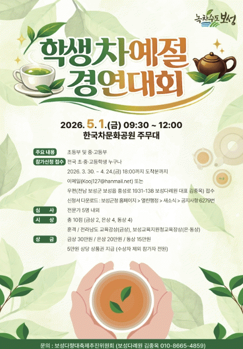 º¸¼º±ºÀº ¿À´Â 24ÀÏ 18½Ã±îÁö ¡®2026 ÇлýÂ÷¿¹Àý°æ¿¬´ëȸ¡¯¿¡ Âü°¡ÇÒ Àü±¹ ÃÊ¡¤Áß¡¤°íµîÇлýÀ» ¸ðÁýÇÑ´Ù°í ¹àÇû´Ù.