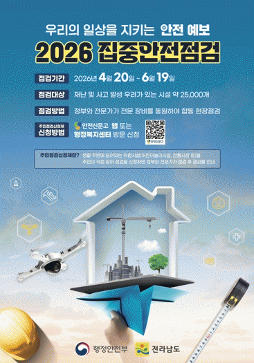 Á¡°Ë ±â°£ °¢ ½Ã±ºÀº ¡®ÁÖ¹ÎÁ¡°Ë½ÅûÁ¦¡¯¸¦ ÅëÇØ ÁÖ¹ÎÀÌ ¹ß±¼ÇÑ À§Çè½Ã¼³¿¡ ´ëÇØ Àü¹®°¡°¡ Á÷Á¢ ¾ÈÀüÁ¡°ËÀ» ÇÑ´Ù. Àü³²µµ´Â ¡®µµ¹Î¾ÈÀüÁ¡°Ë û±¸Á¦¡¯¸¦ ÅëÇØ µµ ¾ÈÀüÁ¡°Ë¹ÝÀÌ ÇöÀåÀ» Á÷Á¢ Á¡°ËÇÏ´Â µî ¾ÈÀü°ü¸® »ç°¢Áö´ë ÇØ¼Ò¿¡ ³ª¼±´Ù.