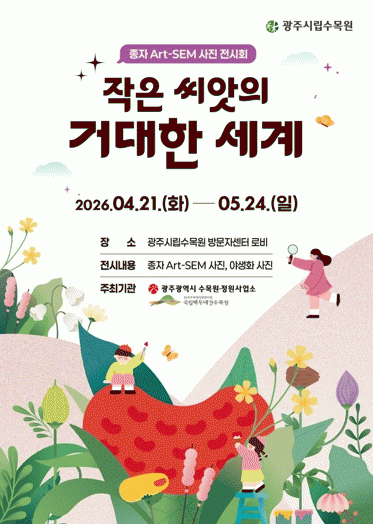 ±¤ÁÖ±¤¿ª½Ã ½Ã¸³¼ö¸ñ¿øÀº 4¿ù21ÀϺÎÅÍ 5¿ù24ÀϱîÁö ¼ö¸ñ¿ø ¹æ¹®ÀÚ¼¾ÅÍ¿¡¼ Á¾ÀÚÀÇ ¹Ì¼¼±¸Á¶¸¦ ¿¹¼úÀûÀ¸·Î ´ã¾Æ³½ Art-SEM »çÁø Àü½Ãȸ ¡®ÀÛÀº ¾¾¾ÑÀÇ °Å´ëÇÑ ¼¼°è¡¯¸¦ ±¹¸³¹éµÎ´ë°£¼ö¸ñ¿ø°ú Çù·ÂÇØ °³ÃÖÇÑ´Ù.