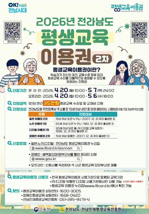 ½Åû ±â°£Àº 4¿ù 20ÀϺÎÅÍ 5¿ù 6ÀϱîÁö¸ç Æò»ý±³À°ÀÌ¿ë±Ç ´©¸®Áý¿¡¼ ¿Â¶óÀÎ Á¢¼ö ¶Ç´Â ¿©¼ö½Ã Æò»ýÇнÀ°üÀ¸·Î ¹æ¹® Á¢¼ö·Î °¡´ÉÇÏ´Ù.