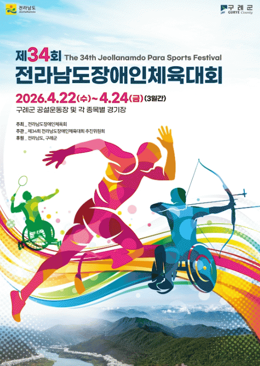 Á¦34ȸ Àü¶ó³²µµÀå¾ÖÀÎüÀ°´ëȸ°¡ 22ÀÏ ±¸·Ê±º ÀÏ¿ø¿¡¼ °³È¸½ÄÀ» ½ÃÀÛÀ¸·Î ¿À´Â 24ÀϱîÁö 3Àϰ£ÀÇ ¿Àü¿¡ µ¹ÀÔÇÑ´Ù.